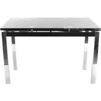 обеденный стол, раскладной, прямоугольная форма, 1100×740 мм, материал: стекло (столешница), хромированная сталь (опоры). Возможны дополнительные скидки : при заказе комплекта из нескольких наименований, при повторной покупке в нашем магазине